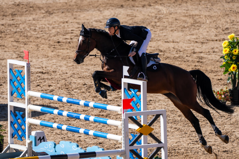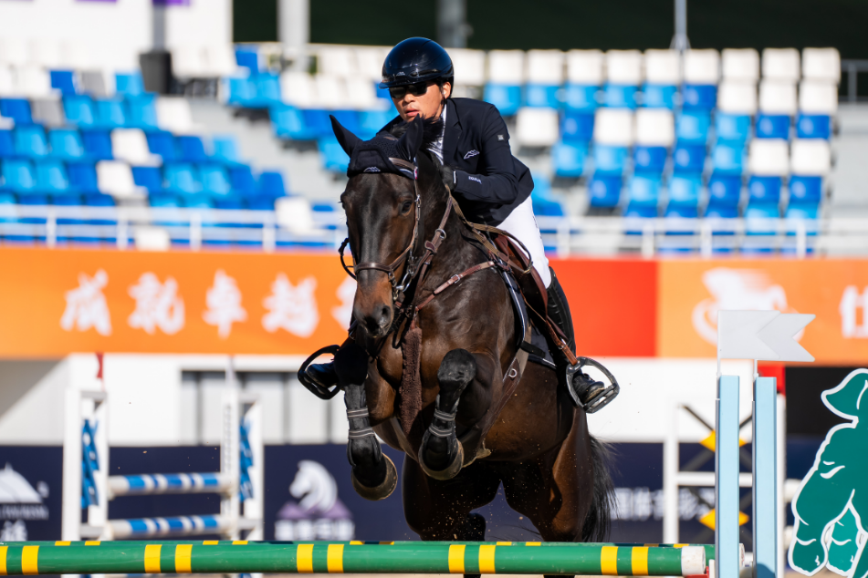 比赛现场,身着专业装备的骑手与赛马默契配合,成为全场焦点。在首日进行的80CM级别单边贴时计分赛、130CM级别即时附加赛及110CM级别争时赛中,骑手们身姿矫健,只见他们轻夹马腹,精准把控节奏,起跳、跨越一气呵成,展现“人马合一”的风采。