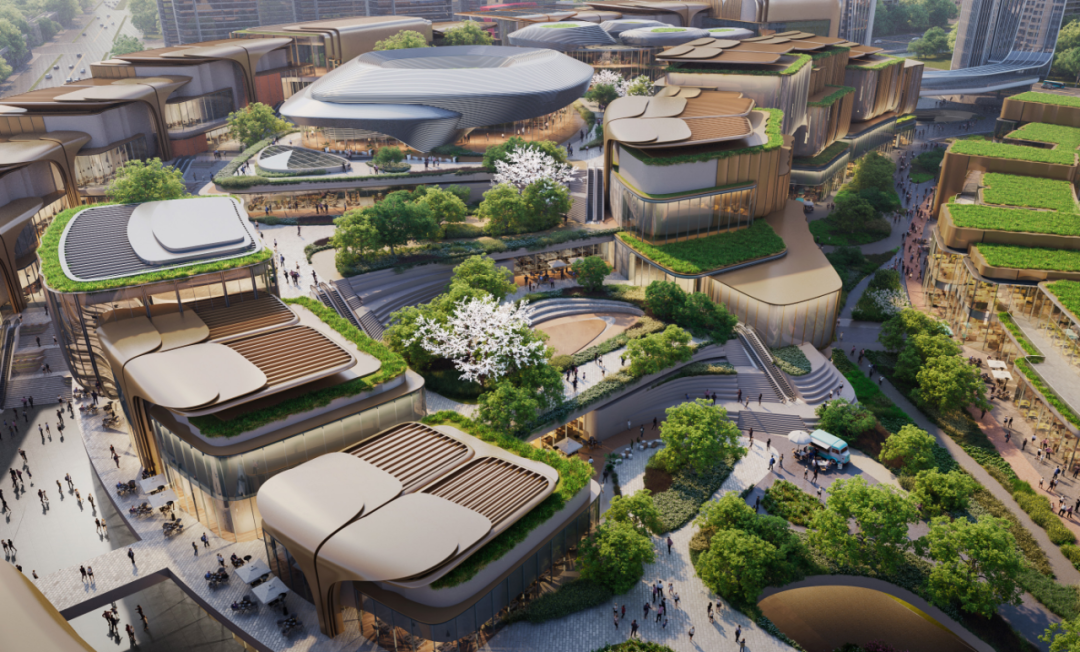 令人惊喜的是,商业综合体中还将打造一座“3D”的立体市民公园——“超级绿芯”。它将打破传统商业空间的封闭感,相当于把商业楼栋打造成一个“可漫步的空中花园”,比如采用退台式设计,在建筑逐层形成“露台花园”,市民逛街时如同置身在公园里,满目都是绿色。