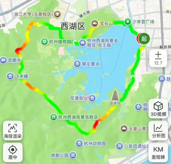 近期,一条西湖爱心徒步路线在社交媒体上走红,全程约20公里,累计爬升高度700-780米。