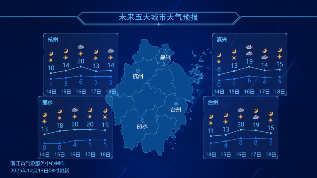 浙江这个周末蛮冷。昨天,有风有雨,还有雪,湿冷全面展开。今天(12月14日)天气转好,但是处于晴冷的状态。杭城阳光重新开启。