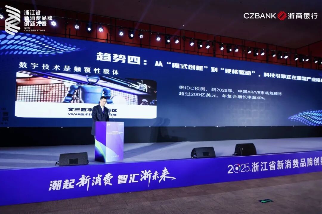 12月12日,2025浙江省新消费品牌创新大赛资源对接活动在杭举办。西湖文旅集团旗下文三数字生活街区凭借数字文旅融合的创新实践,在众多参赛项目中脱颖而出,成功摘得“新消费场景银奖”。