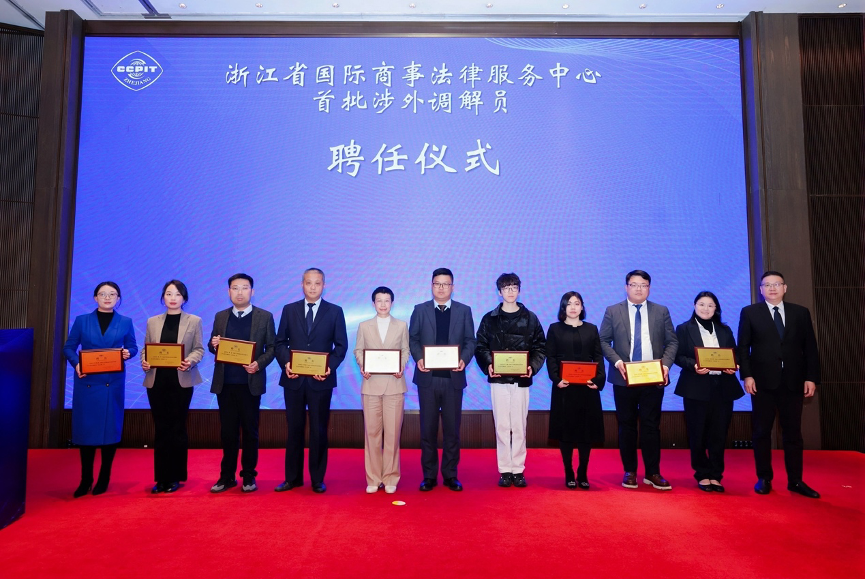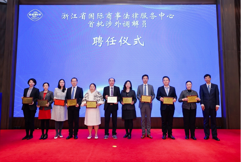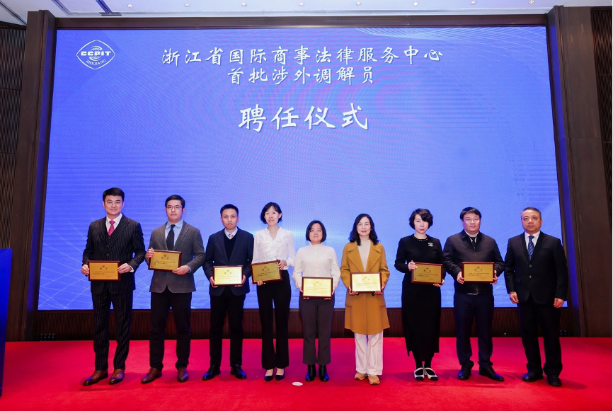 会议举行了浙江省国际商事法律服务中心首批涉外兼职调解员聘任仪式。60位来自全球五大洲主要经贸区域,覆盖国际贸易、知识产权、海事海商等七大领域的资深专家获聘。这支高水平、国际化的调解员队伍,将为浙江企业处理复杂跨境商事纠纷、维护海外权益提供有力支持。