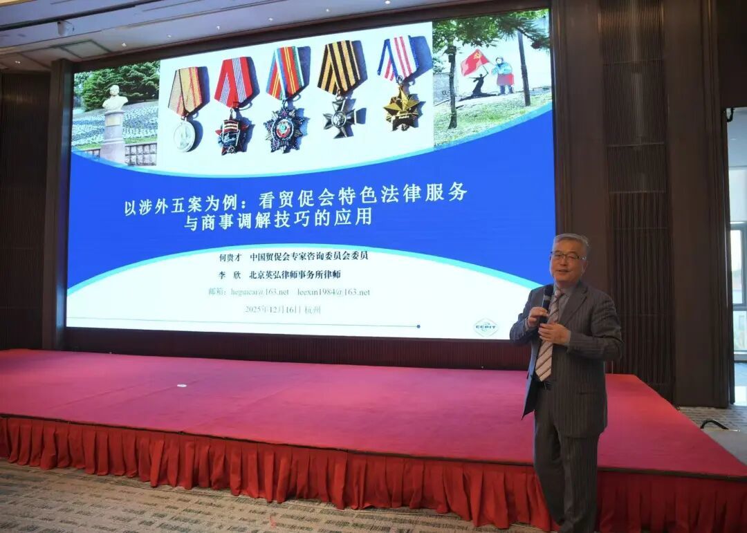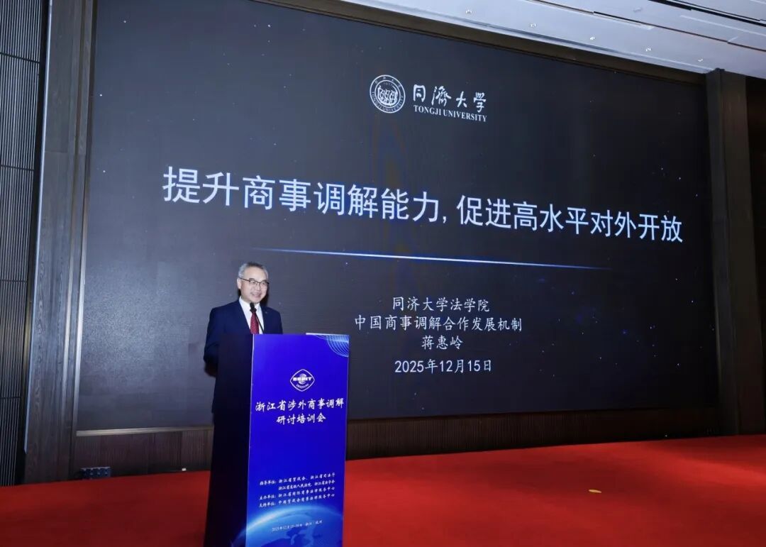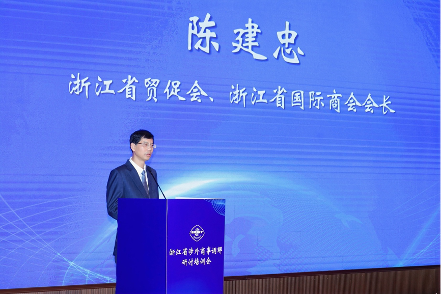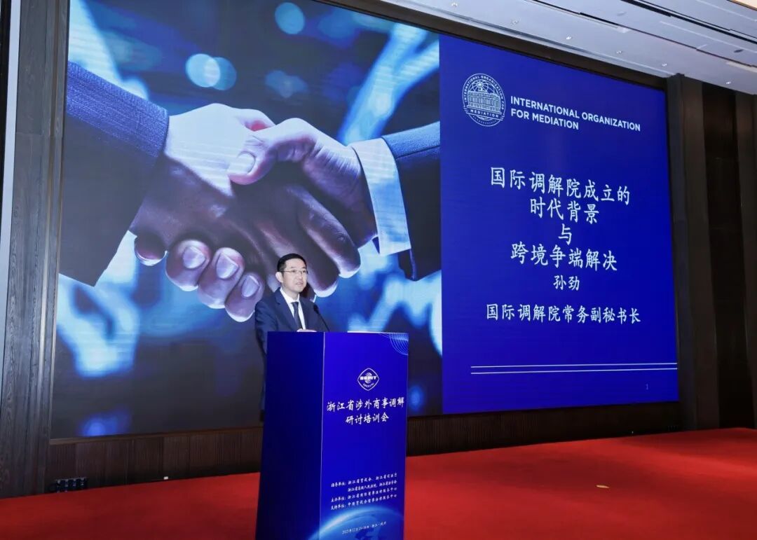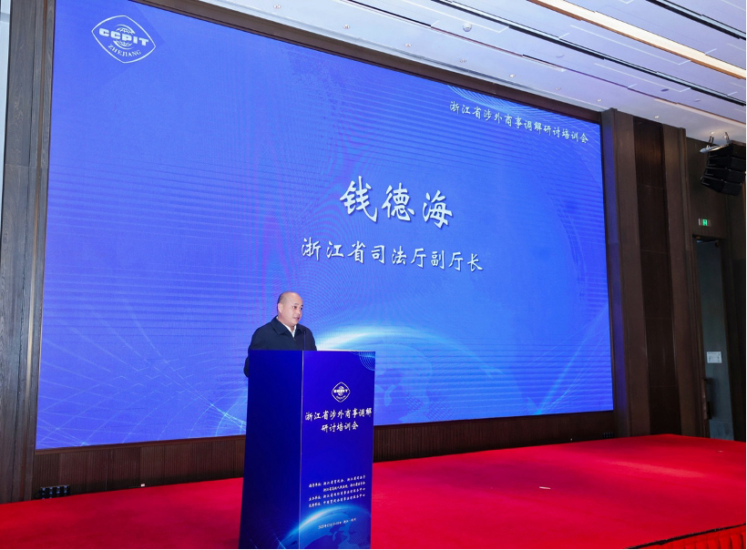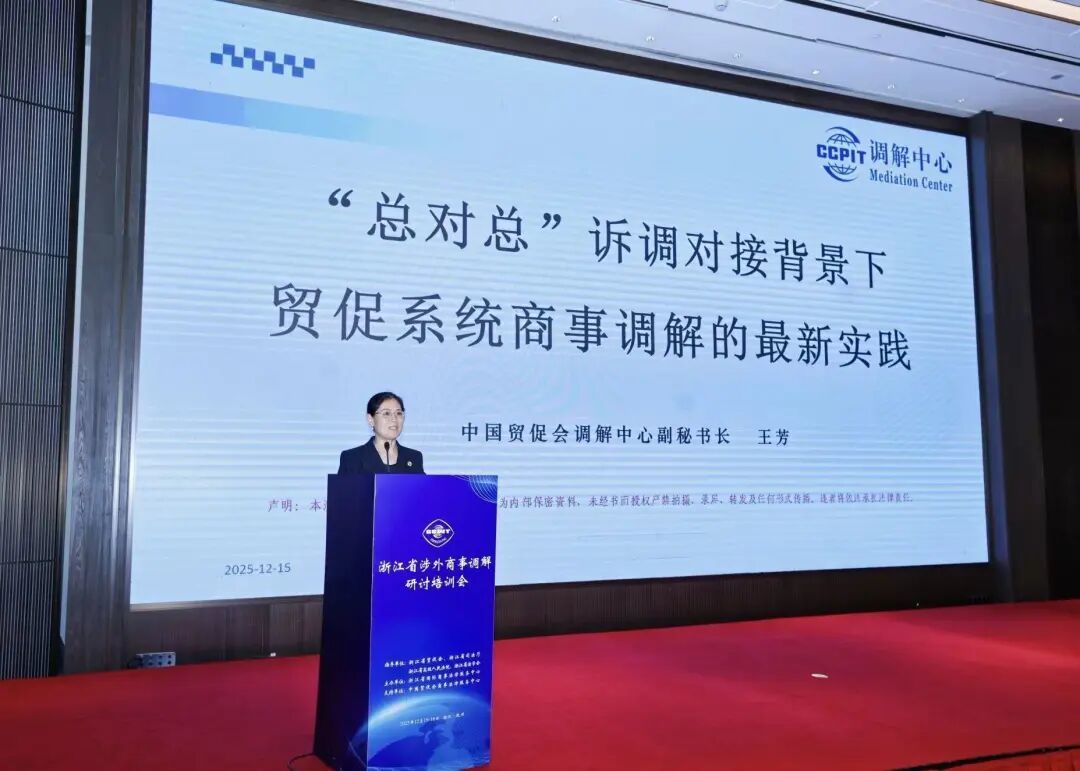 12月15日至16日,由浙江省贸促会、省司法厅、省法院、省法学会共同指导,中国贸促会商法中心支持,浙江省国际商事法律服务中心主办的浙江省涉外商事调解研讨培训会在杭州成功召开。浙江省贸促会会长陈建忠、中国贸促会商法中心主任蔡晨风、浙江省司法厅副厅长钱德海、省法院审判委员会专职委员叶向阳、省法学会专职副会长许洁出席并致辞。浙江省贸促会副会长严佳作主旨演讲,国际调解院常务副秘书长孙劲、同济大学法学院院长蒋惠岭及中国贸促会调解中心副秘书长王芳等专家作专题授课。来自浙江全省贸促、司法、法院系统,高校专家学者以及涉外调解员、企业代表等150余人线下参会,在线参会7000余人次。