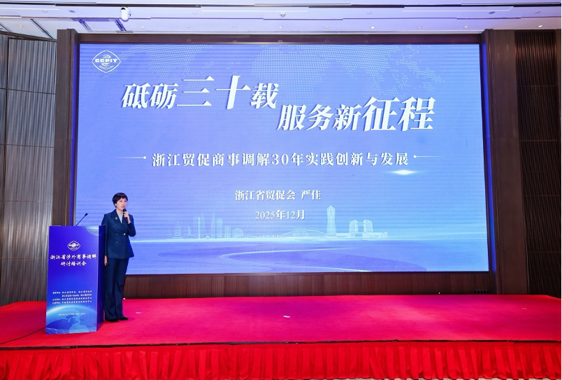 严佳作“浙江贸促商事调解30年创新实践与发展”的主旨演讲,系统回顾了浙江贸促调解事业的发展历程、服务成效与机制创新。她表示,未来浙江贸促商事调解事业将继续朝着国际化、专业化和规范化的方向发展,需要各界共同努力来推动。