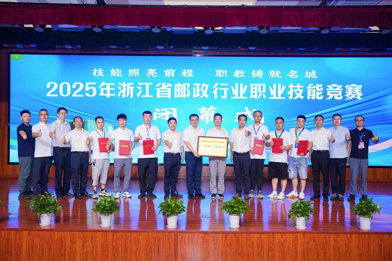 今年8月,在桐庐举办的2025年浙江省邮政行业职业技能竞赛上,通达学院受邀独立组队,联合企业遴选6名技术骨干组队参赛,一举夺得团体一等奖及多项个人奖,初步验证了“政校企”协同育人的成效。