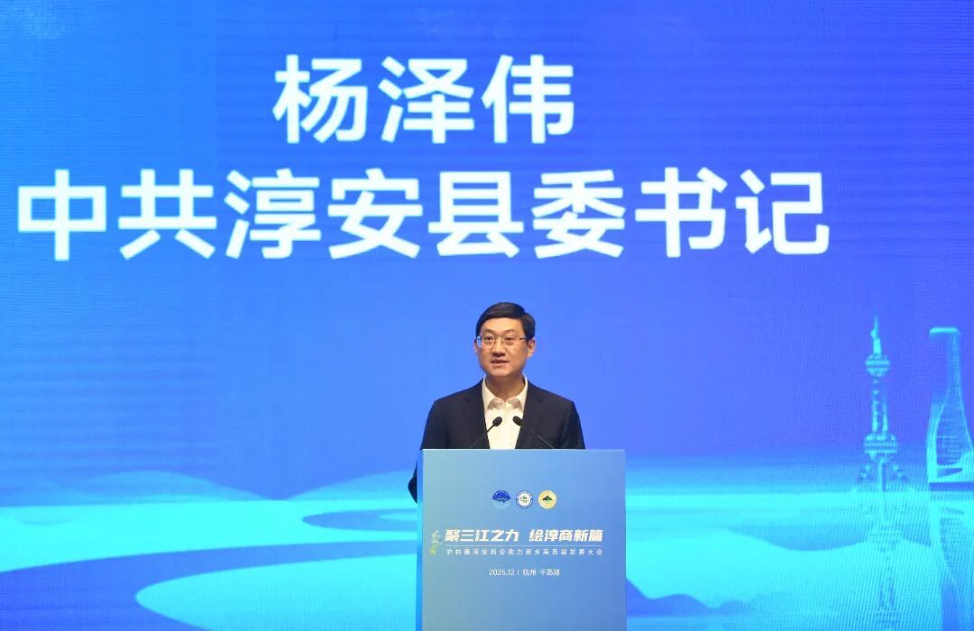 杨泽伟说,三江潮涌、饮水思源,衷心感谢大家情系桑梓的“赤子深情”。十年“淳商回归”,十余年商会建设,大家奋发有为,在外拼搏展现了“淳安精神”;情系桑梓,把产业活水引回家乡热土;义利兼顾,把温暖善意洒满乡野田间,为家乡发展注入坚实力量。承前启后、继往开来,让我们共同见证家乡蝶变的“精彩画卷”。今年以来,全县上下以“千万工程”为牵引,交出了生态向好、发展向上、融合向深、民生向优的年度答卷。站在新起点,淳安将进一步树保护之责、破发展之题、聚县域之能、增百姓之福,全力推动从山区县向富裕县的主动求变。双向奔赴、携手奋进,期盼与大家共绘未来的“宏大篇章”。当前,淳安正处于跨越式高质量发展的关键期,期盼淳商们做建设家乡的参与者,把更多优质项目推荐、布局到淳安,共同打造“因水而美、因水而强”的现代化产业新版图。做资源汇聚的引导者,当好政策宣传员、环境推介员、人才联络员,把更多资金、技术、人才引到淳安。做淳安故事的传播者,展示淳安形象、发出淳安声音、讲好淳安故事,让更多人了解淳安、走进淳安、创业淳安、支持淳安。