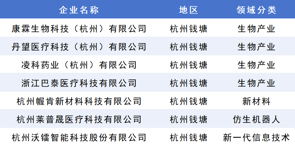 此次入选的7家企业,呈现结构多元、技术密集、面向未来的鲜明特征,共同构筑起钱塘高质量发展的创新矩阵。其中,多家企业已获评国家高新技术企业、省级专精特新企业,并在创新药物研发、高端医用材料、工业机器人等细分领域形成技术突破,充分体现区域创新策源能力的持续提升。