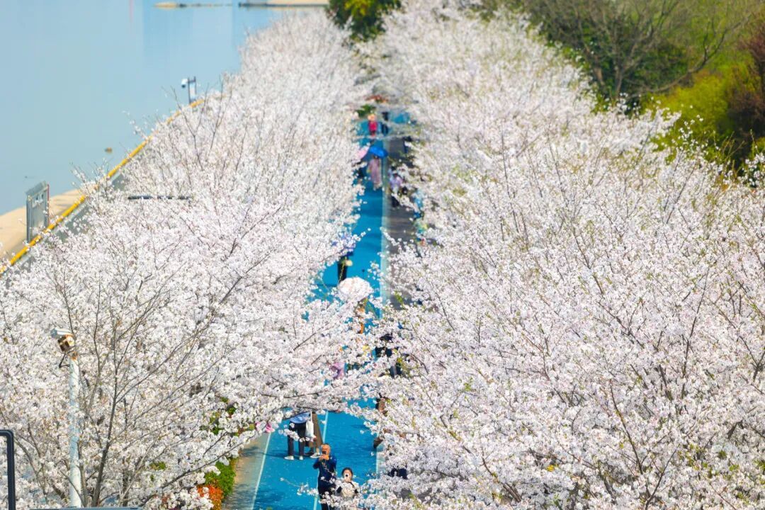 开放共享,已经成为“国际滨”的主旋律,群众的感受最为直观——自2020年闻涛路滨江段全线贯通至今,这条“最美跑道”也从原本的水泥堤坝蝶变为艺术彩色混凝土铺设的江堤,让游客打卡更“出片”,沿途增设驿站和滑板公园、篮球场等健身空间,也让这条防洪堤成为了引领时尚生活方式的全民共享空间。