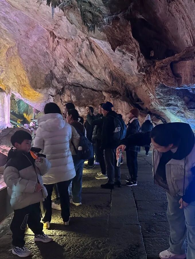 瑶琳仙境景区迎来八方游客,不少家庭与游客选择在此开启新年的第一场旅行。“瑶琳仙境一直很有名,趁着三天假期,带孩子来实地看看喀斯特地貌,比课本上生动多了!”来自江苏苏州的刘艳虹一家是首次到访,对景区的游览体验颇满意。