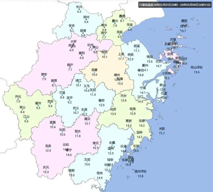 昨天(1月4日)早晨,省内30多个站点最低气温不足0℃。早上沿海和浙南还有阳光眷顾,中午开始全省都是阴天为主的天气了,部分地区开始淅淅沥沥下雨。