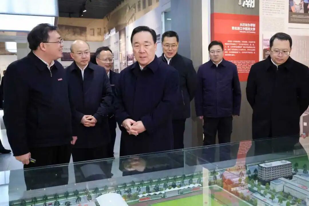 1月5日,浙江省委书记王浩专题调研“双一流196工程”,图为在浙江中医药大学滨文校区考察。
