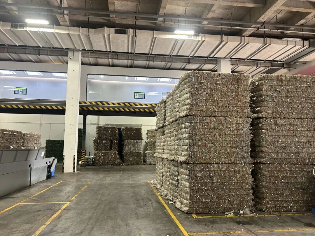 技术升级,是这座分拣中心的核心竞争力,更是让“垃圾变资源”效率倍增的秘诀。高精度分选设备带了高清摄像头,集成了近红外识别、可见光识别等技术,再加上企业自主研发的算法模型,传送带上的废旧物资一经过,就能被实时扫描,分拣准确率超99%。“就拿光学晶体设备来说,塑料瓶的颜色、条纹,甚至是细微的材质差异,它都能精准识别,准确率高达98%左右,每小时能分拣5到7吨物资,效率是人工分拣的3倍。”徐心怡说,不无论是塑料、纸张还是金属,在AI系统面前都无处遁形,再通过高速气流喷阀自动分拣,大幅度提升了再生资源的纯度。分选后的物料,还会经由高密度打包系统,被压缩成规格统一、堆码稳定的标准块体,极大优化仓储空间,也让运输效率实现质的飞跃。