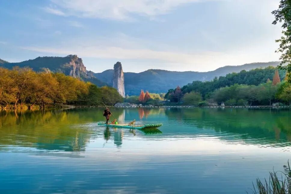 相传轩辕帝在此炼丹,丹鼎压塌成湖,方有今日仙都神韵。距缙云县城东7公里,鼎湖峰如春笋刺天,峰巅苍松间蓄水成池,四时不竭。来此吹山风、吸鲜氧,身心即刻舒展。渔舟横渡处,整幅画面宛如山水画境。