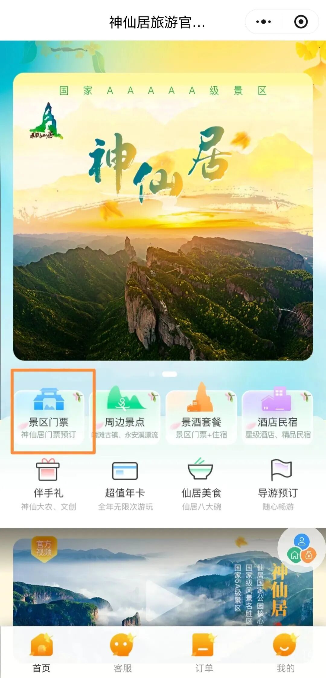 1.搜索“神仙居旅游”小程序进入主页面