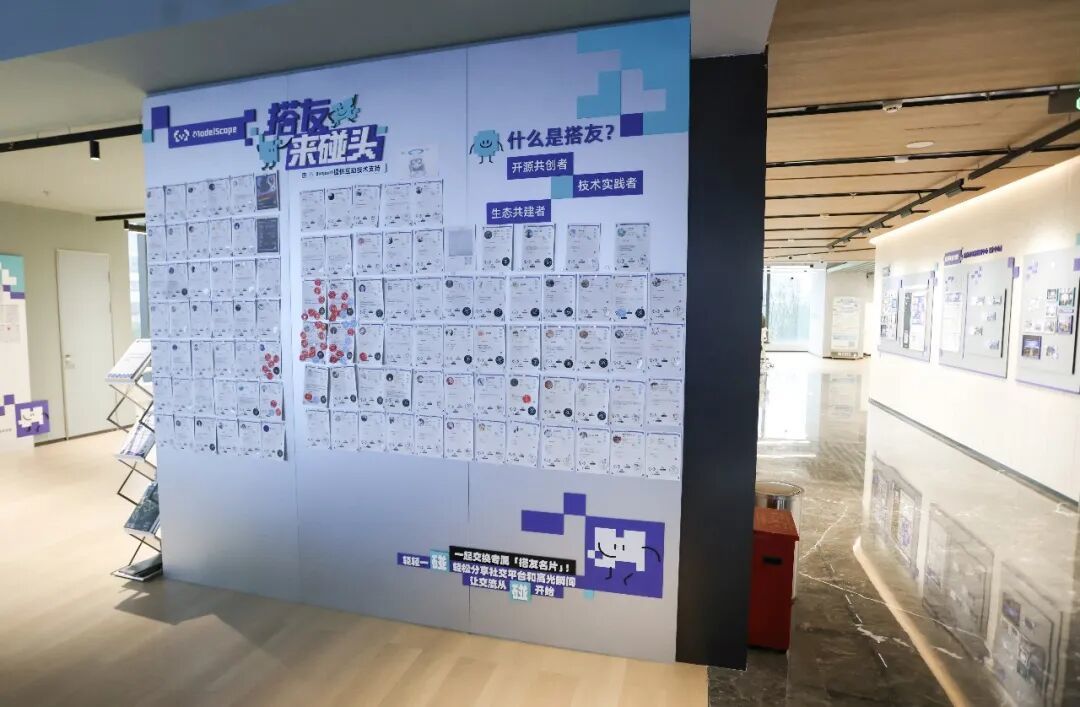 “与魔搭初相识,是在我对大模型懵懂的时候。当时正在尝试使用GPT跟着魔搭的教程一步步操作,从环境配置到模型调用,那些让人头疼的技术难题逐个拆解……从那以后,魔搭就成了我在大模型领域探索的‘根据地’。”魔搭空间墙上,一位名叫“半寸”的创作者如此写道。
