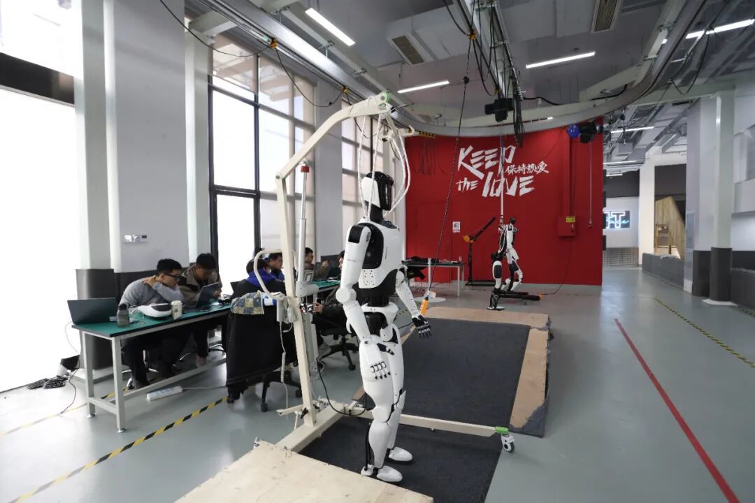 走进西湖区双浦镇的省级人形机器人中试平台室内测试场,仿佛置身一家高精尖的“机器人医院”,一排人形机器人和四足机器狗正在不同的“科室”接受“体检”——