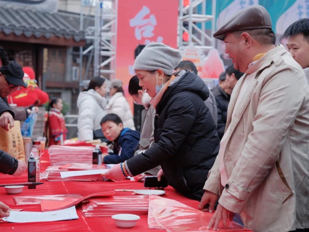 “手写的春联才叫有年味,笔墨里都是喜气,带回家贴门上,沾沾年气!”市民郑女士现场挥毫,红纸上的吉祥话一气呵成,引来一片称赞。