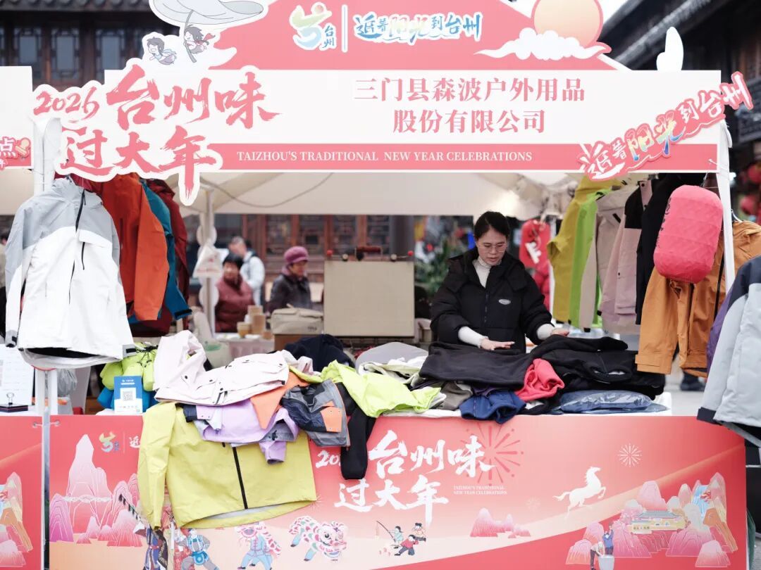 国潮风文创产品深度融合本土文化元素,串联传统文化与现代审美,吸引众多年轻人驻足挑选;另一侧,台州制造的优质好物满满当当——厚实耐用的家用锅具、防风保暖的三门冲锋衣,逛一趟便能将“年味”与“品质”一同打包带回家。
