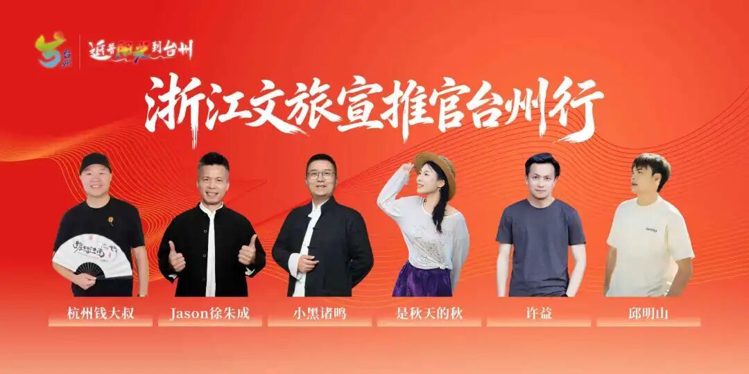 杭州钱大叔、Jason徐朱成、小黑诸鸣、是秋天的秋、许益、邱明山等13位浙江省文化和旅游厅组建的文旅宣推官队伍组团助阵。活动期间,他们将沿着烹山煮海鲜天下美食之旅、台州文化体验之旅、和合台州体验之旅三条主题线路,带着全网观众深度解锁台州的山海之美与人文底蕴,通过镜头让更多人认识台州、奔赴台州。