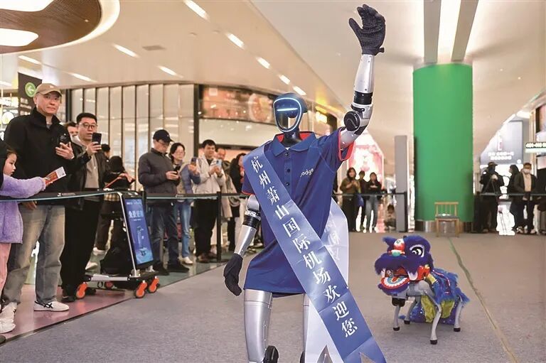 人形机器人和智能机器狗现身萧山机场