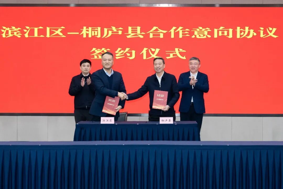 随后召开滨江区—桐庐县区县协作联席会议,双方签订滨桐新质生产力园区共建意向协议。