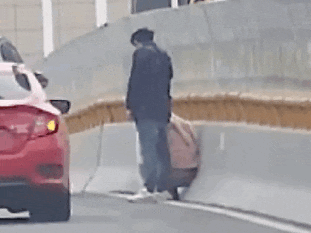 男子向过往车辆及行人挥手求助