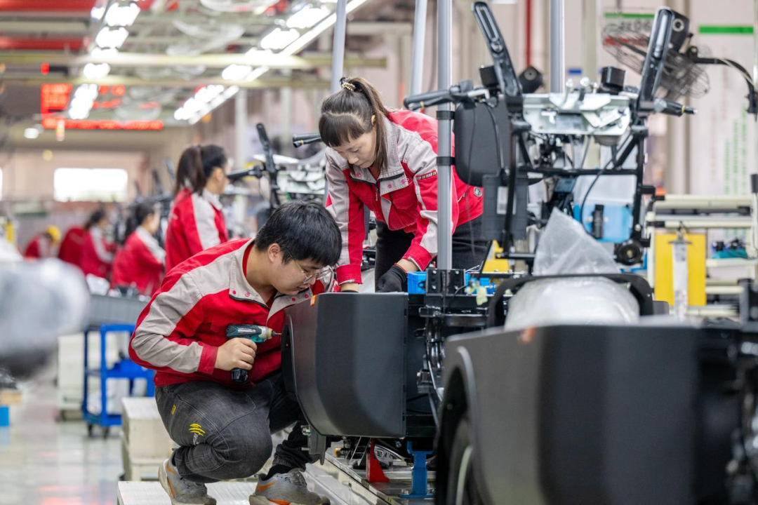 工人们在自动化生产线上赶制新能源微型物流车订单 图源:潮新闻客户端
