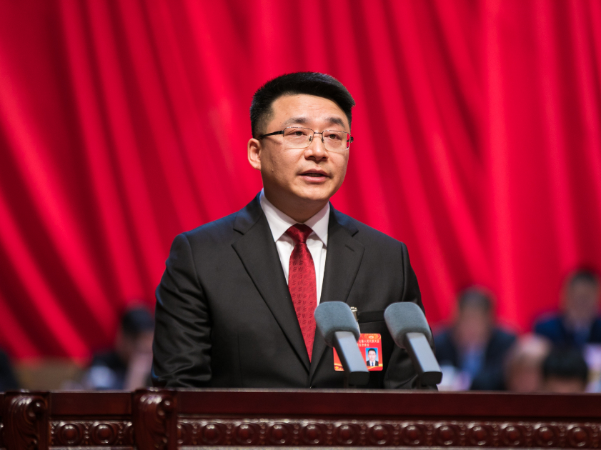 钮俊杨泽伟郑志光等在主席台就座 卜利斌作政府工作报告 董文吉主持