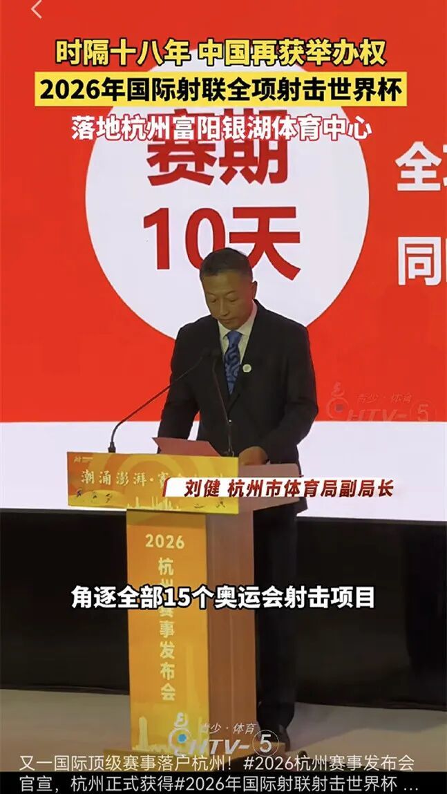 近日,在2026杭州赛事发布会上,官方宣布2026年国际射联全项射击世界杯将落地富阳银湖体育中心,届时运动员们将角逐全部15个奥运会射击项目。