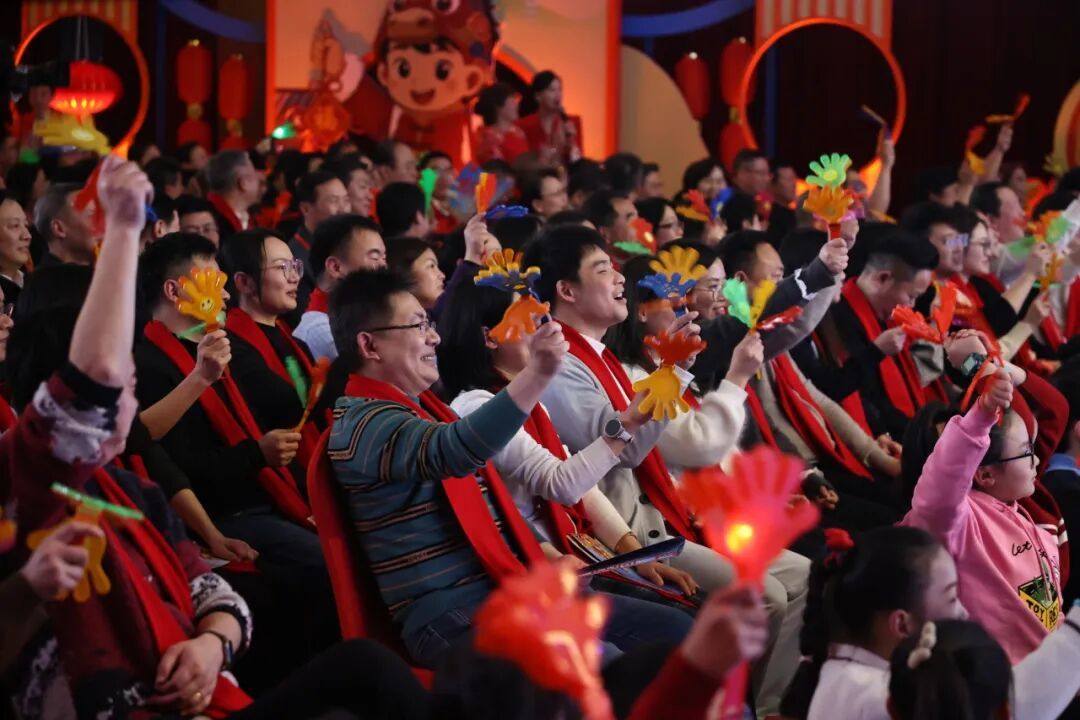 在互动环节非遗猜谜环节,大屏幕上轮番展示着全省各地非遗传承人以“马”年新春为主题创作的剪纸、蛋雕、灶头画、鱼拓等精美作品,现场观众踊跃参与,开启竞猜狂欢,礼堂内的氛围被一次次推向高潮。而极具收藏与纪念价值的非遗作品、满载乡野风味的各地农产品礼包作为游戏奖品,更让观众的参与热情持续高涨。
