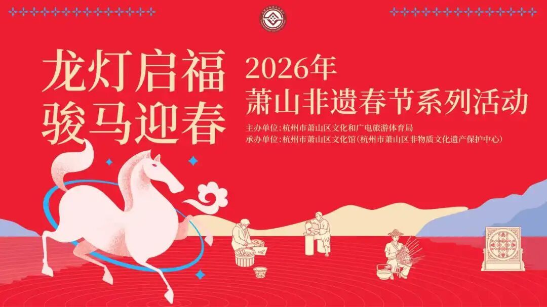 2024年12月,萧山区的元宵节(河上龙灯胜会)作为“春节——中国人庆祝传统新年的社会实践”组成部分被列入联合国教科文组织人类非物质文化遗产代表作名录。为进一步贴近当代生活,增强年轻群体对春节的认同与传承自觉,营造浓厚节日氛围,“龙灯启福·骏马迎春”2026年萧山非遗春节系列活动之“萧山非遗新春七天乐”即将上线,陪伴大家度过一个福气满满、年味浓浓的非遗春节!