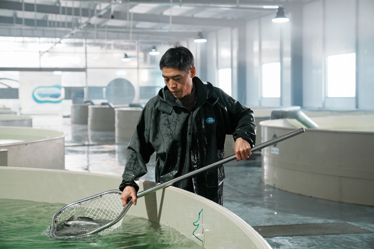 “这一步,走对了。”当天,杭州市农业科学研究院水产研究所副所长储忝江来到智慧渔仓走访。看到车间里的热闹景象,他欣慰地笑了。2023年起,储忝江带着陆基养鱼的方案来到淳安,方军明正是第一个“吃螃蟹”的。
