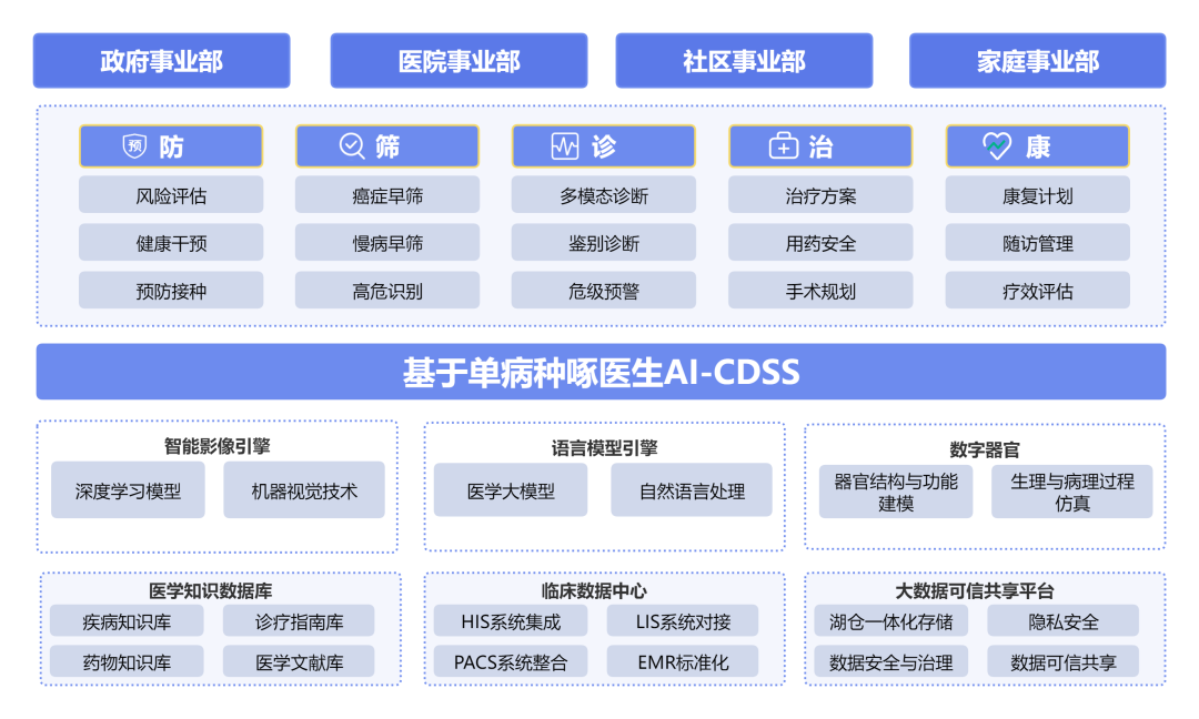 为实现技术与机制的双轮驱动,健培科技还同步进行了组织架构变革,成立政府事业部、医院事业部、社区事业部、家庭事业部。未来,健培科技将持续打磨政府主导,医院、社区、家庭三位一体的协同机制,构建医疗健康一体化深度融合的创新方案,推动更多医疗AI成果下沉基层、服务大众,为产业高质量发展注入科技动力。