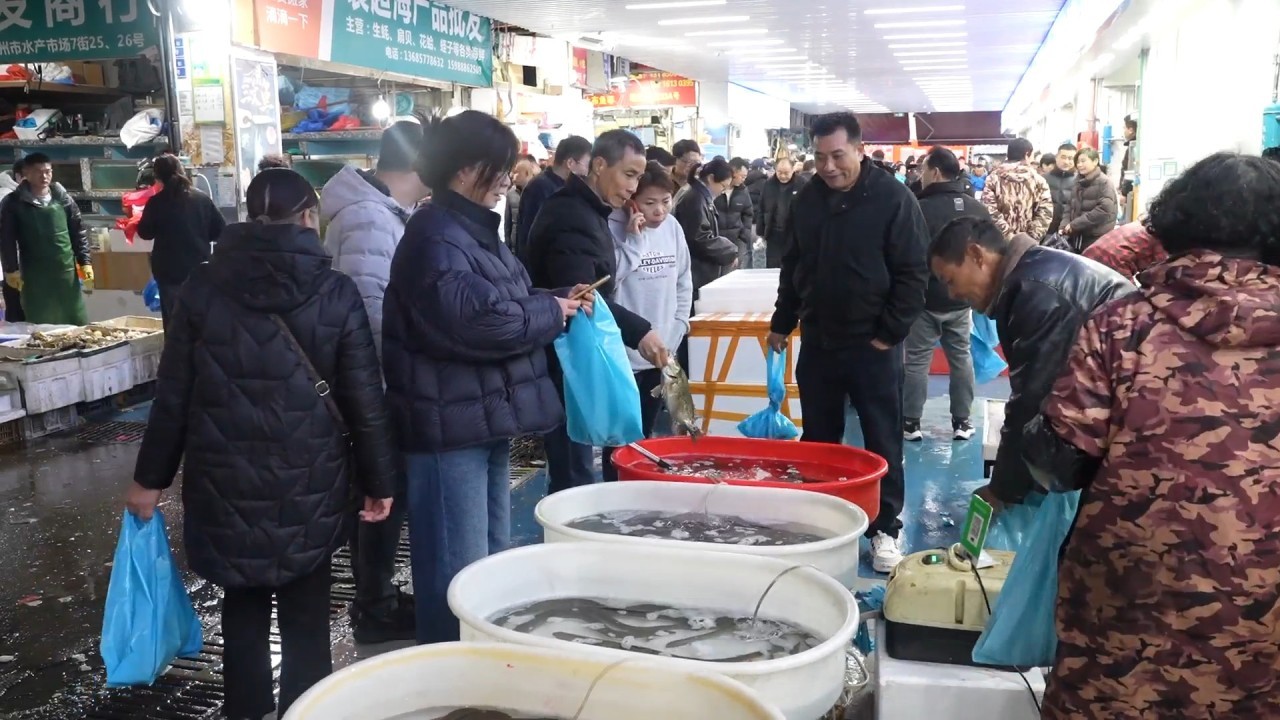 为保障春节期间供应充足、价格平稳,市场商户们早早就开启了“备货模式”。从事水产批发生意的祖女士凌晨两点就到岗验货,她的摊位上各类水产品备货量较平日增加了50%。据市场管理方介绍,春节期间除除夕下午有短暂歇业外,市场基本保持24小时运营,基本所有商户都坚守岗位,目前市场蔬菜、水产等农产品价格整体低于去年同期,让市民买得实惠。