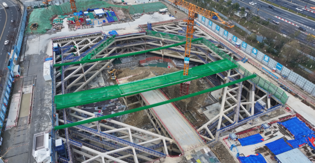 余杭国际体育中心项目建设现场,200余名建设者坚守岗位,全力奋战施工一线。