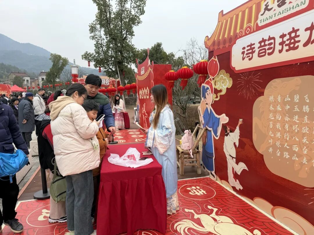 诗韵接龙,游客与“李白”对诗,赢取银票。