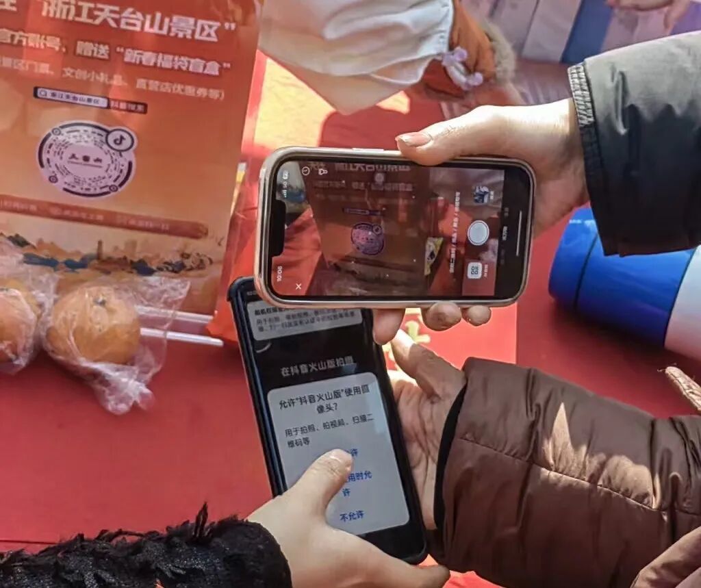 游客展示朋友圈集赞截图和兑奖现场。