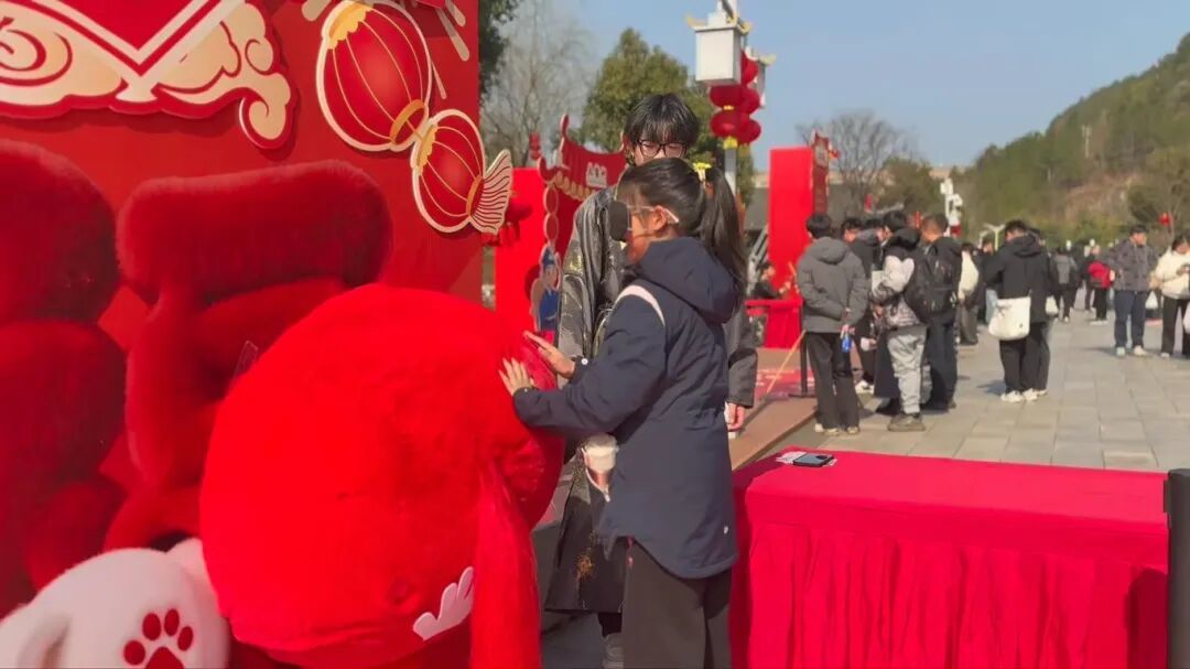 游客们排起长队打卡留念,祈愿新年圆满。