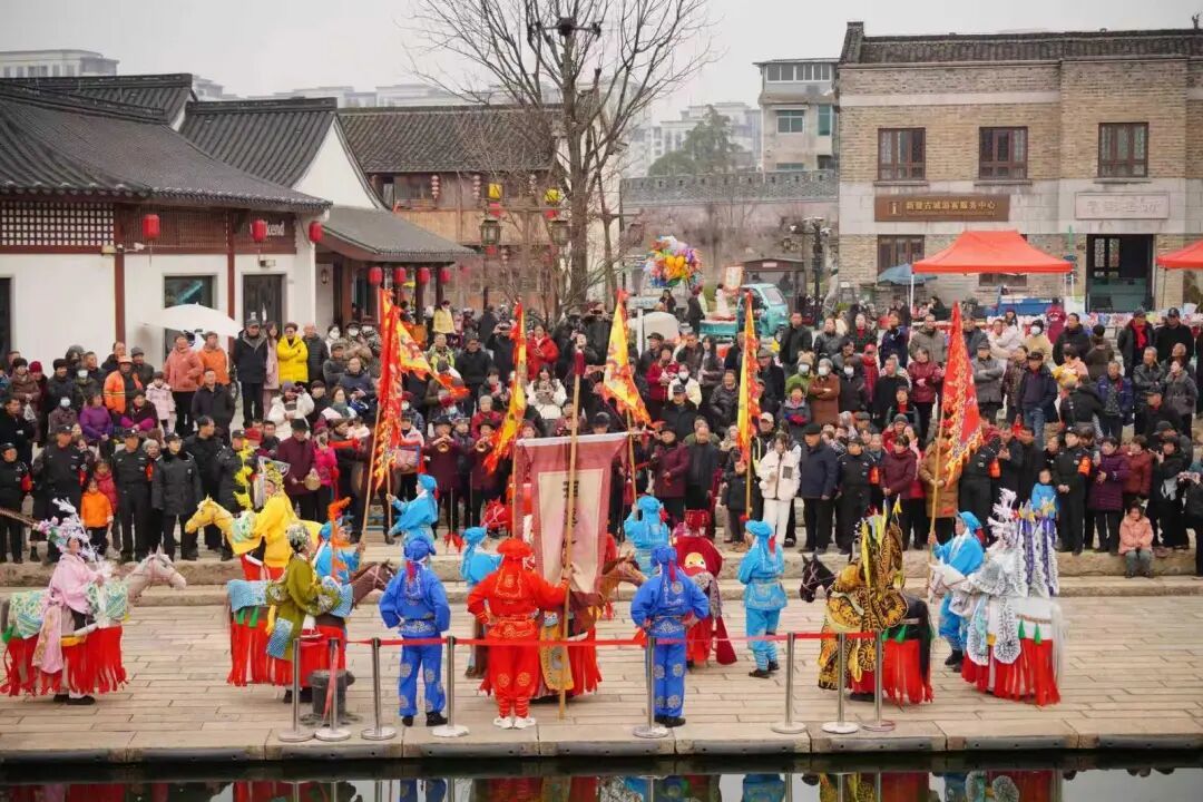 锣鼓铿锵,竹马腾跃。竹马队队员身着全套行头、手持彩竹马,在新登古城的青石板路上和着锣钹节奏踏跳、转身、列队,时而如骏马奔腾气势如虹,时而如信马由缰悠然自得。围观游客掌声不断,孩子们追着竹马奔跑,古老民俗在烟火气中焕发新生。