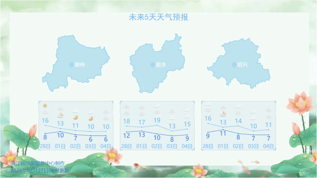 今天(2月28日)白天,全省以多云到阴天气为主,仅浙南地区偶有小雨飘过。想出门散步、踏青透气、简单洗晒的朋友,一定要抓住这短暂的时光。