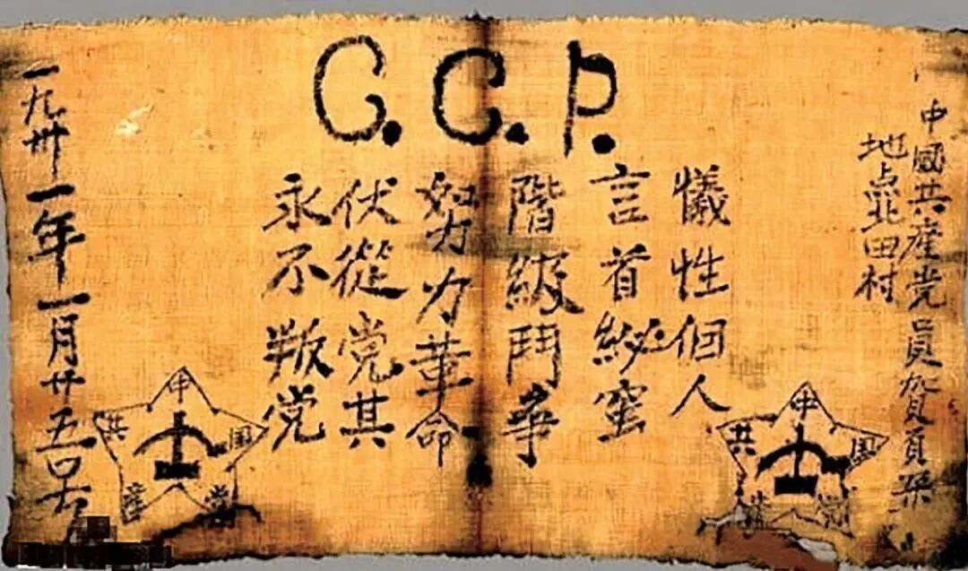“牺牲个人,言首秘蜜(严守秘密),阶级斗争,努力革命,伏(服)从党其(纪),永不叛党。”这是现存最早的中国共产党入党誓词,出自江西永新农民贺页朵之手。90多年过去了,这份写在土布上的誓词,字字千钧,至今依旧值得每一位后来者深思:你入党,到底为什么?答案就藏在举起右手时念出的誓词里。