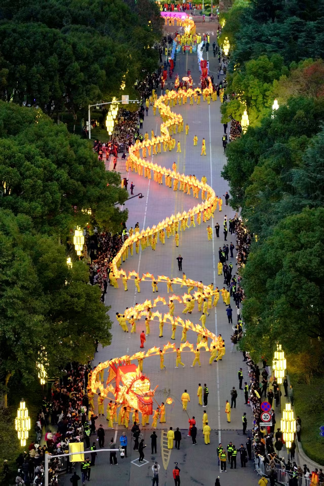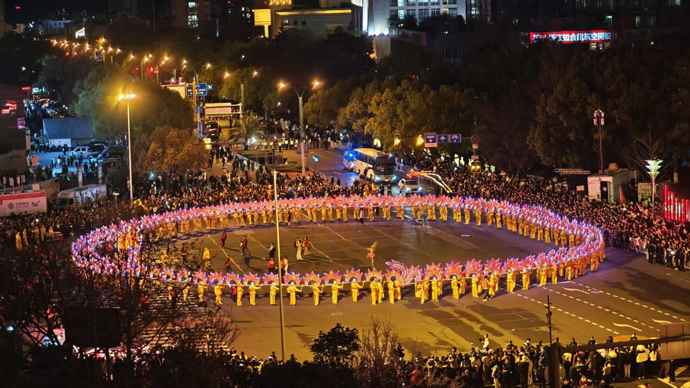 压轴出场的丽水经开区大源祥龙由350人舞动,178节龙身绵延450米,作为拥有500多年历史的“龙中之王”,在夜色中不时变幻出小相带阵,回龙阵,元宝阵,双开门阵,八字阵等五大阵型,气势磅礴,将现场气氛推向最高潮。