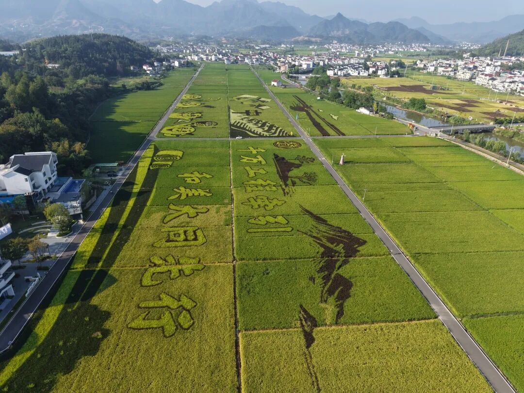 巨大的田园画卷展现出“千万工程”在乡村建设中的生动实践,图为建德大同稻香小镇稻田 图源:潮新闻客户端