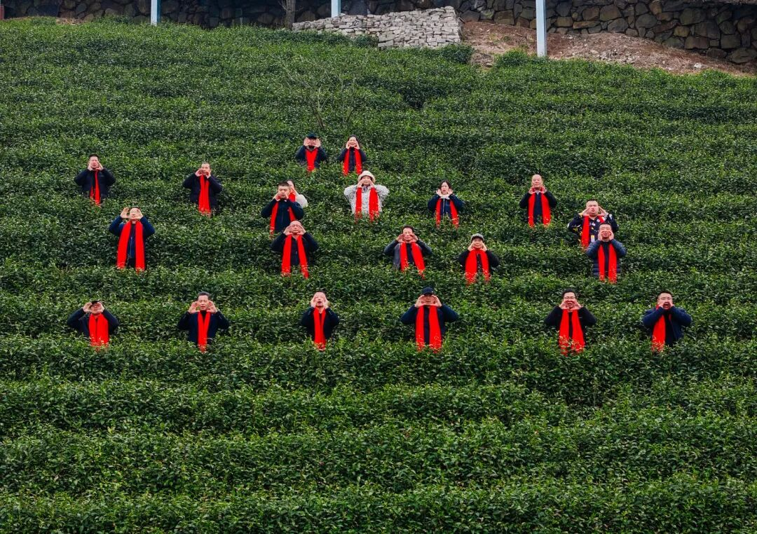 今天上午,黄湖镇一处金奖茶园内举行“喊山祈福”活动,祈祷春茶丰收。当地村民、茶文化爱好者及茶企从业者共21人齐聚茶山,以传统仪式唤醒春茶。
