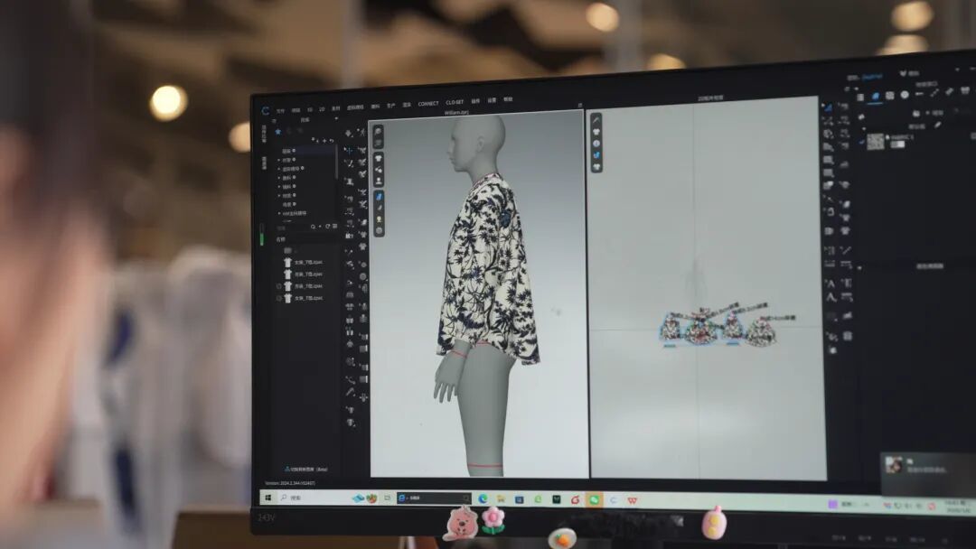 在嘉溢制衣的设计部,设计师王霞输入几个风格关键词后轻点鼠标,短短几秒,屏幕上便出现了4款完整的设计效果图。“没用AI之前,我每天出3到4个款,现在普通款式一天能出十几个。而且效果可以呈现在虚拟模特身上,灵感一下子就通了!”