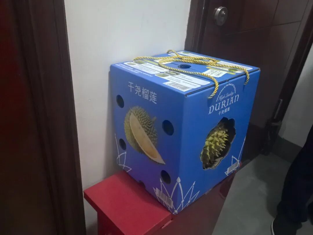 继续往上一层,消防员发现10楼楼道里气味明显浓烈,抬眼一看一户人家门口摆放了一箱干尧榴莲,凑近仔细闻,大家都笑了。“就是这个味道,‘罪魁祸首’在这呢。”