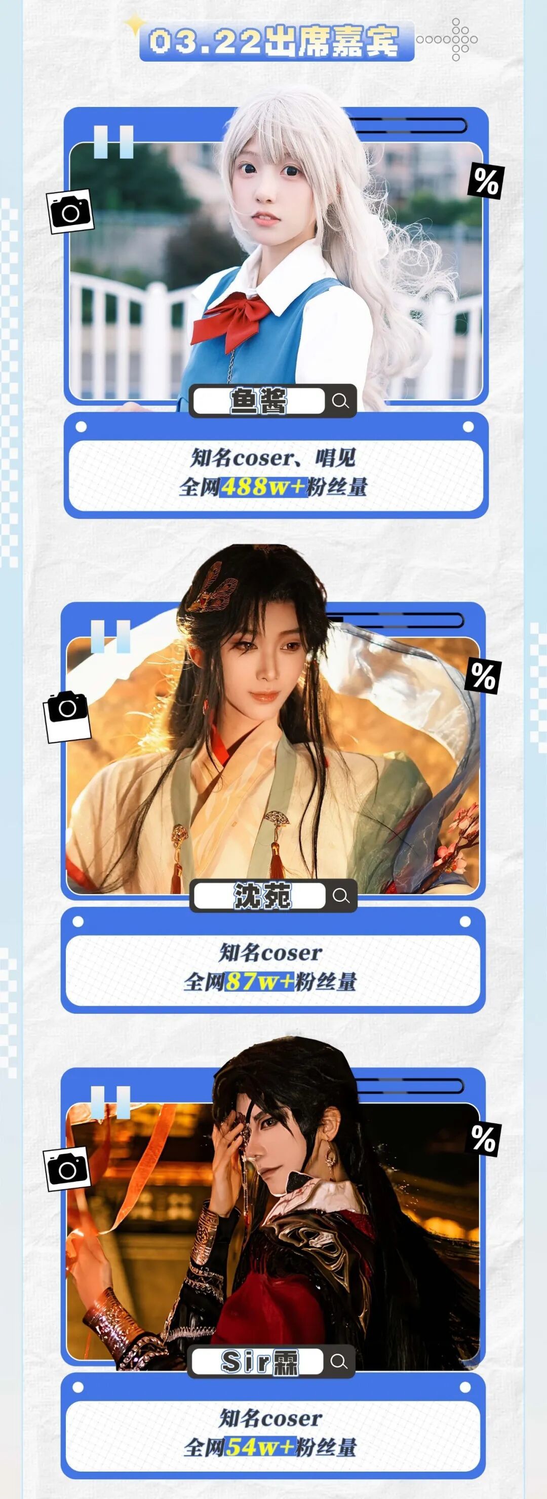 第一天的热闹只是开始,3月22日,元气POP・武林漫巡动漫嘉年华还将迎来鱼酱、沈苑、Sir霖等更多知名coser,嘉宾签售、宅舞表演、游戏互动等环节也将持续在线。