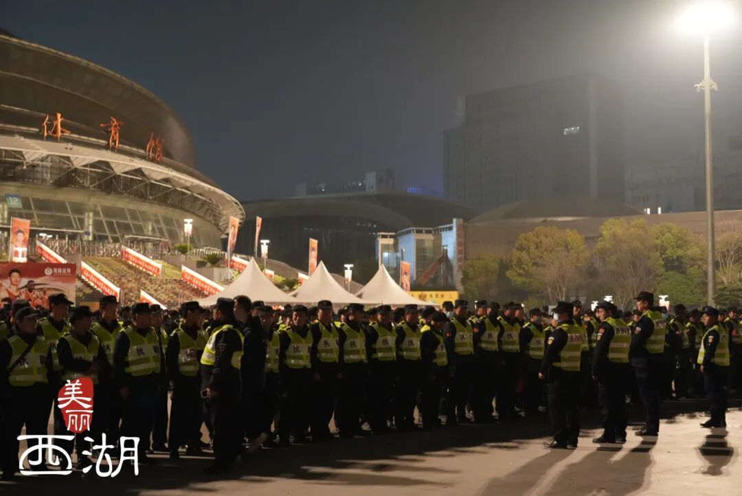 赛事当天凌晨3点,天未破晓,2000余名保安员已抵达现场,在夜色中奔赴十五个赛段进行保障。来自西湖区综合行政执法局灵隐支队的队员们也同步就位,重点对黄龙体育中心周边及赛道沿线市容秩序进行巡查。