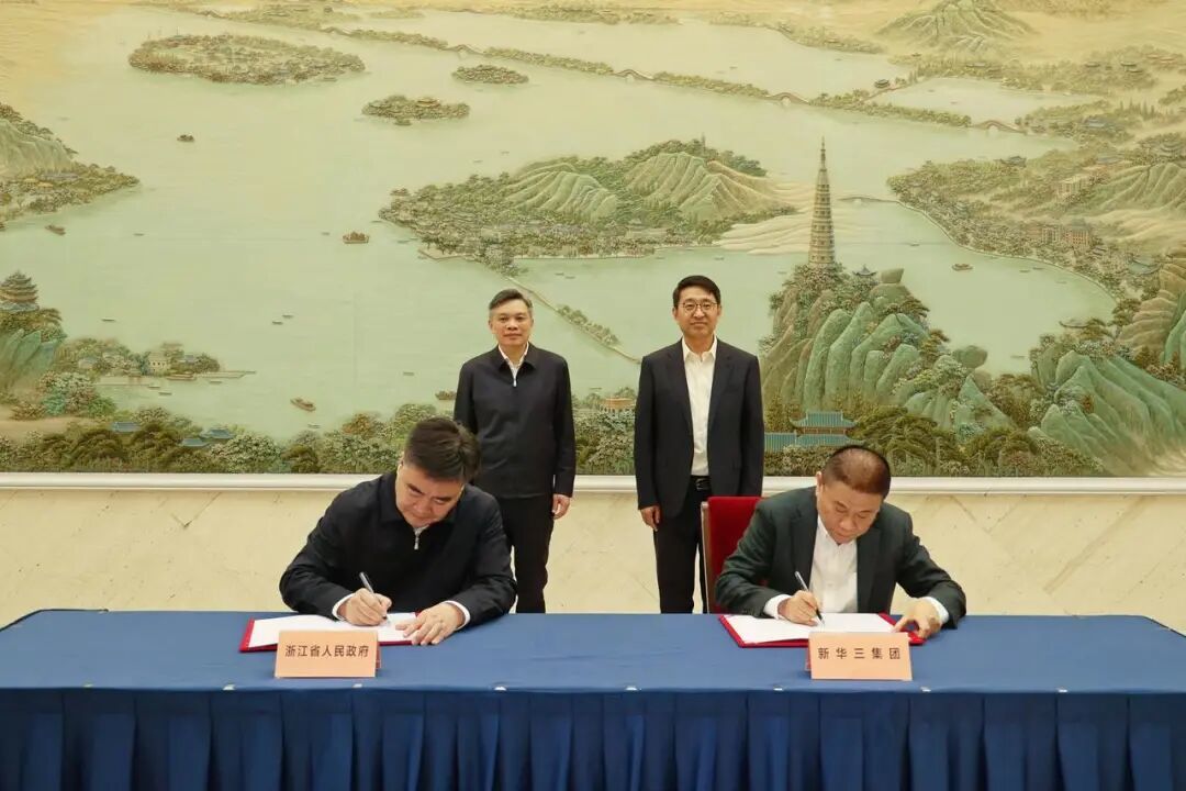 24日,浙江省人民政府与新华三信息技术有限公司签署战略合作框架协议。浙江省委副书记、省长刘捷,新华三总裁兼首席执行官于英涛见证签约。
