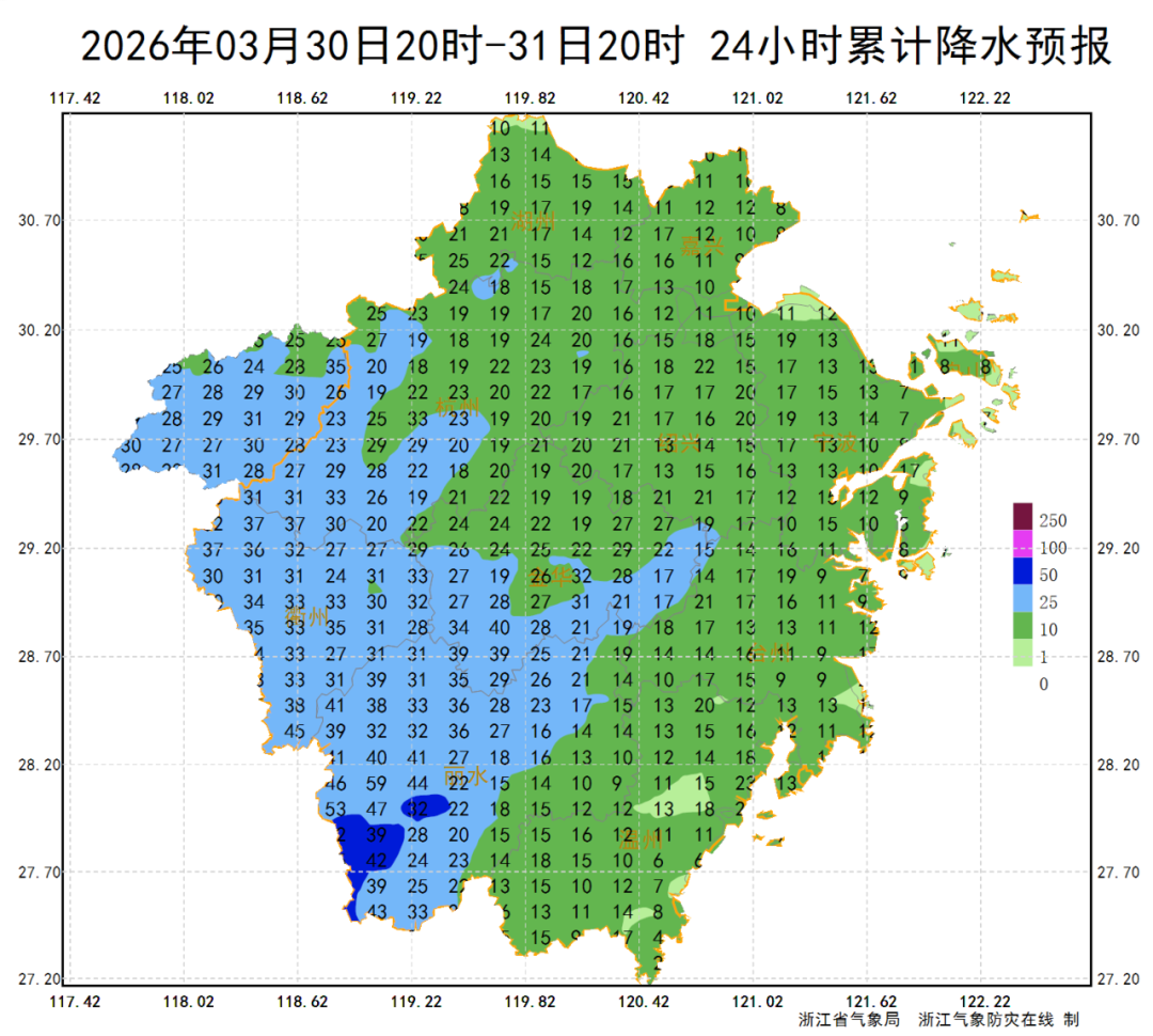 本周后期,西南暖湿气流依旧“马力全开”。3月31日,浙中南地区仍有较明显阵雨,局部伴有雷雨,部分区域会出现中到大雨、局地暴雨。4月2日夜里,受西南急流增强影响,我省还将迎来新一轮较明显阵雨或雷雨,局部仍可能伴有强对流天气,降水频繁需持续关注。